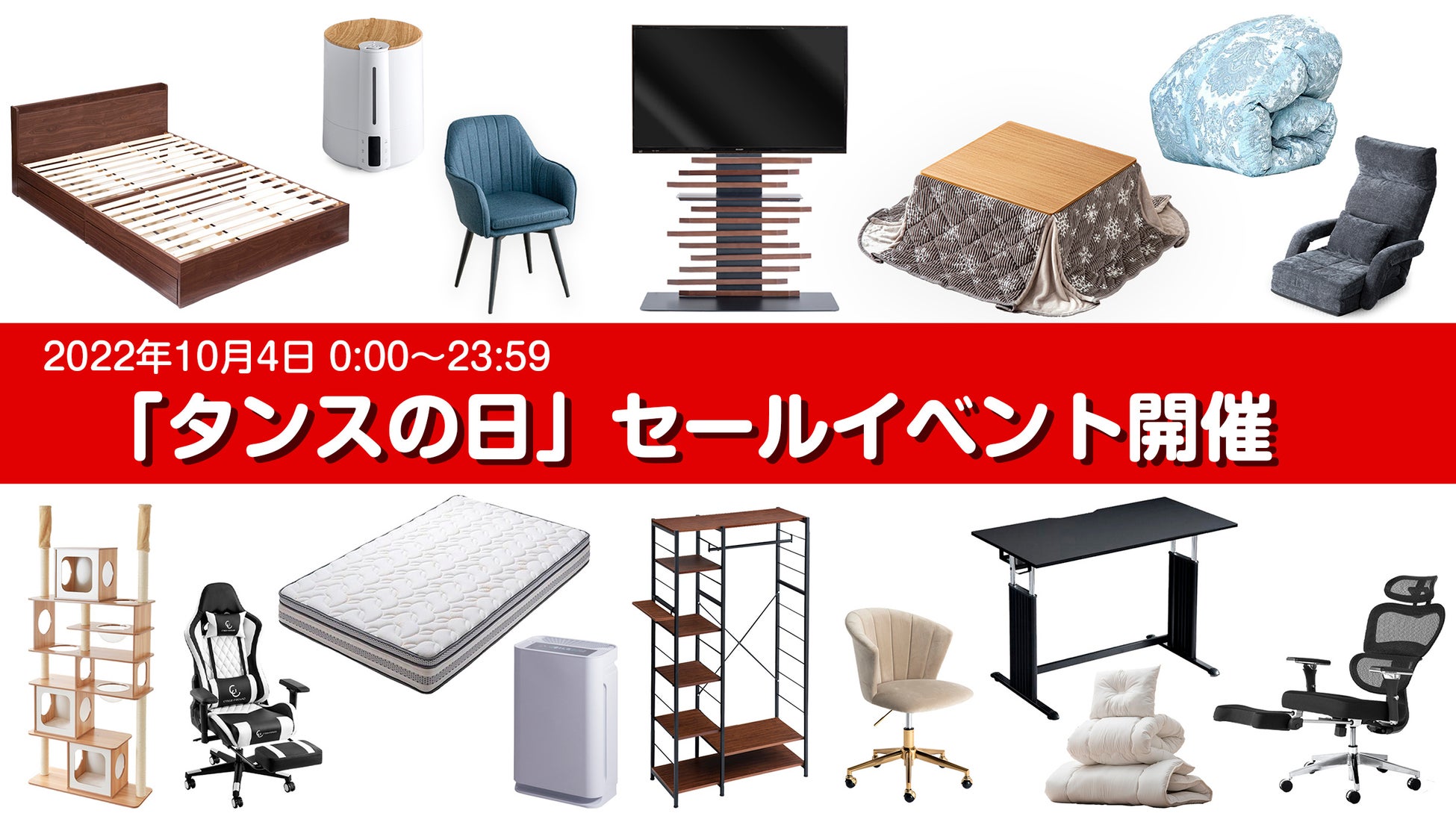 家具・インテリア×EC事業を展開するタンスのゲン株式会社(以下タンスのゲン、本社:福岡県大川市、代表取締役:橋爪福寿)は、2022年10月4日(火)の「タンスの日」にちなんで、運営しているタンスのゲン本店(https://www.tansu-gen.jp/)にて、日頃の感謝を込めて全商品10%OFFのセールを始め、各種お得なイベントを開催いたします。