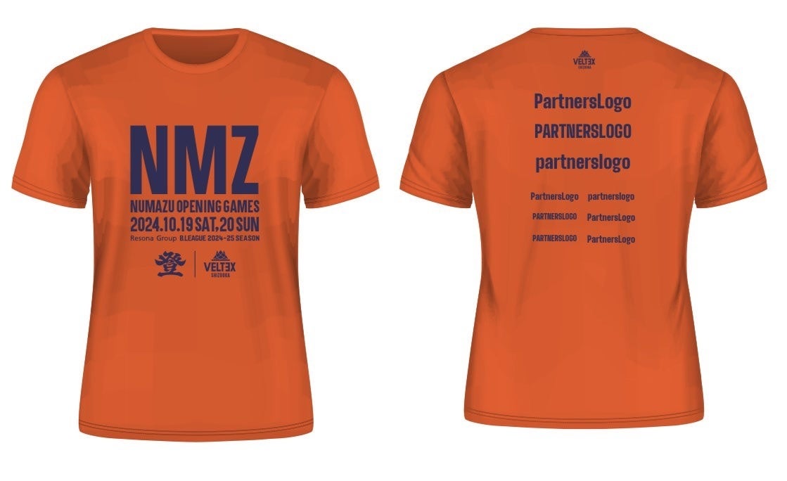 開幕戦にご来場いただいたファンの皆様には、沼津開幕記念Tシャツをプレゼント!ベルテックスカラーのオレンジで会場を一色に染め、応援を盛り上げましょう。