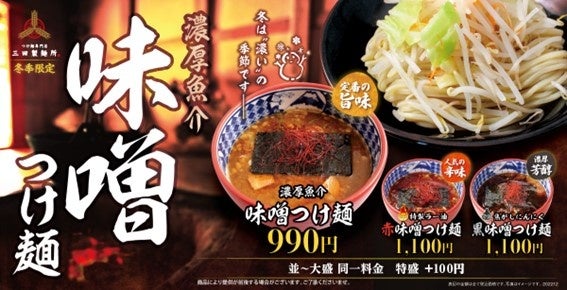 【三田製麺所】冬は“濃い”の季節です―『濃厚魚介味噌つけ麺』12/6(火)より販売