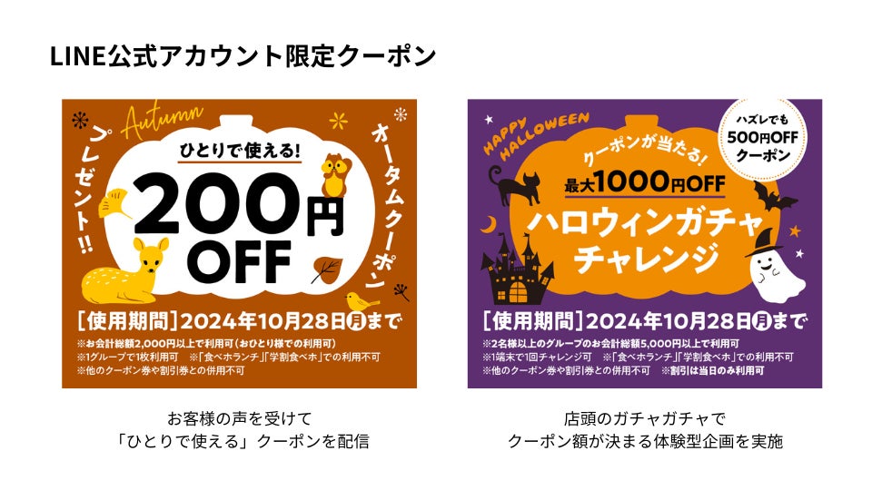 LINE限定クーポン利用数は前年比1.5倍に増加しています。とくに、お客様からの要望を反映した「ひとりで利用できるクーポン」は、駅前立地の「焼肉の和民」で高い反響を獲得しました。さらに、店舗でのガチャガチャ体験型企画や季節感を取り入れたキャンペーンなど、LINE友だちの来店動機を高める企画を展開しています。