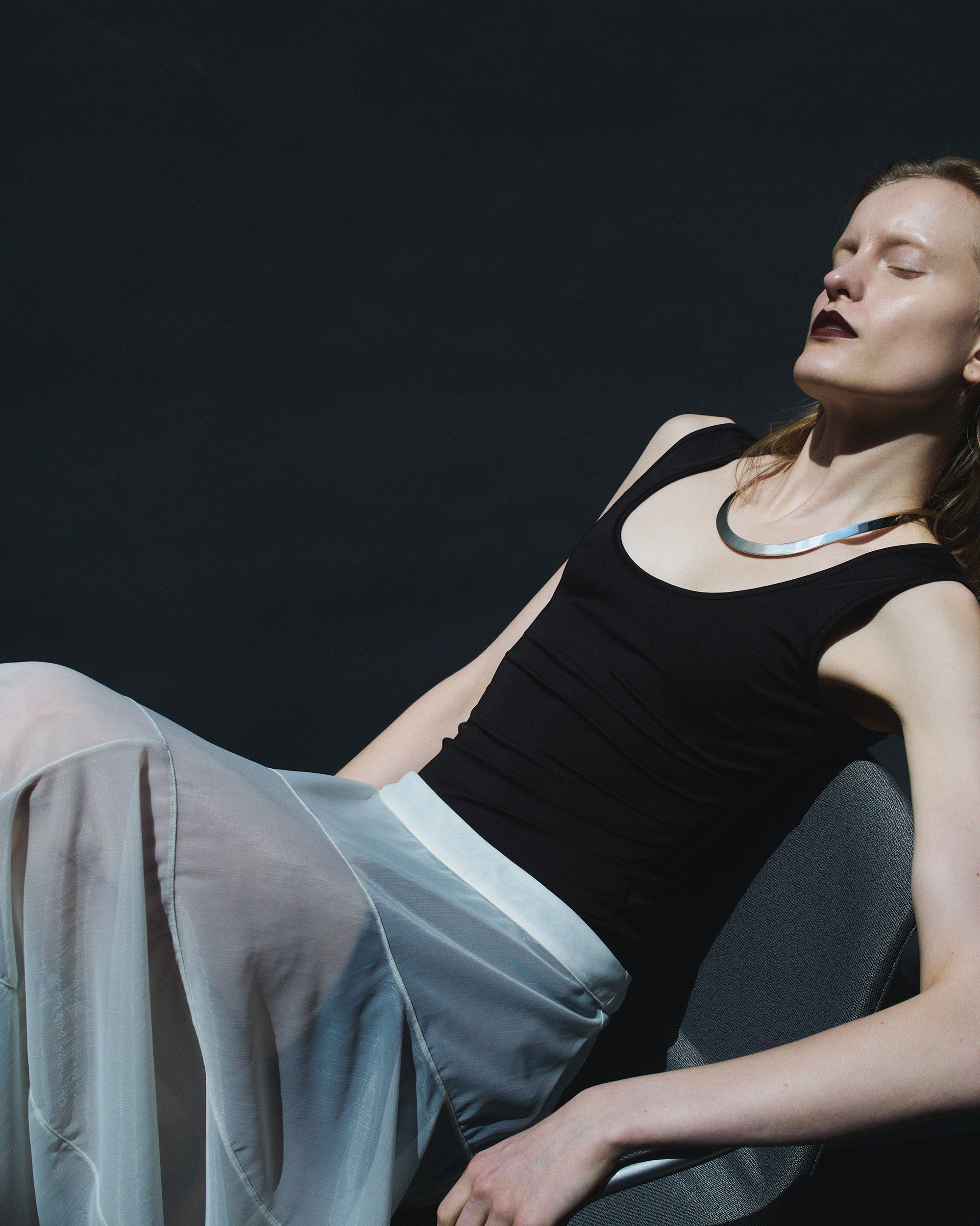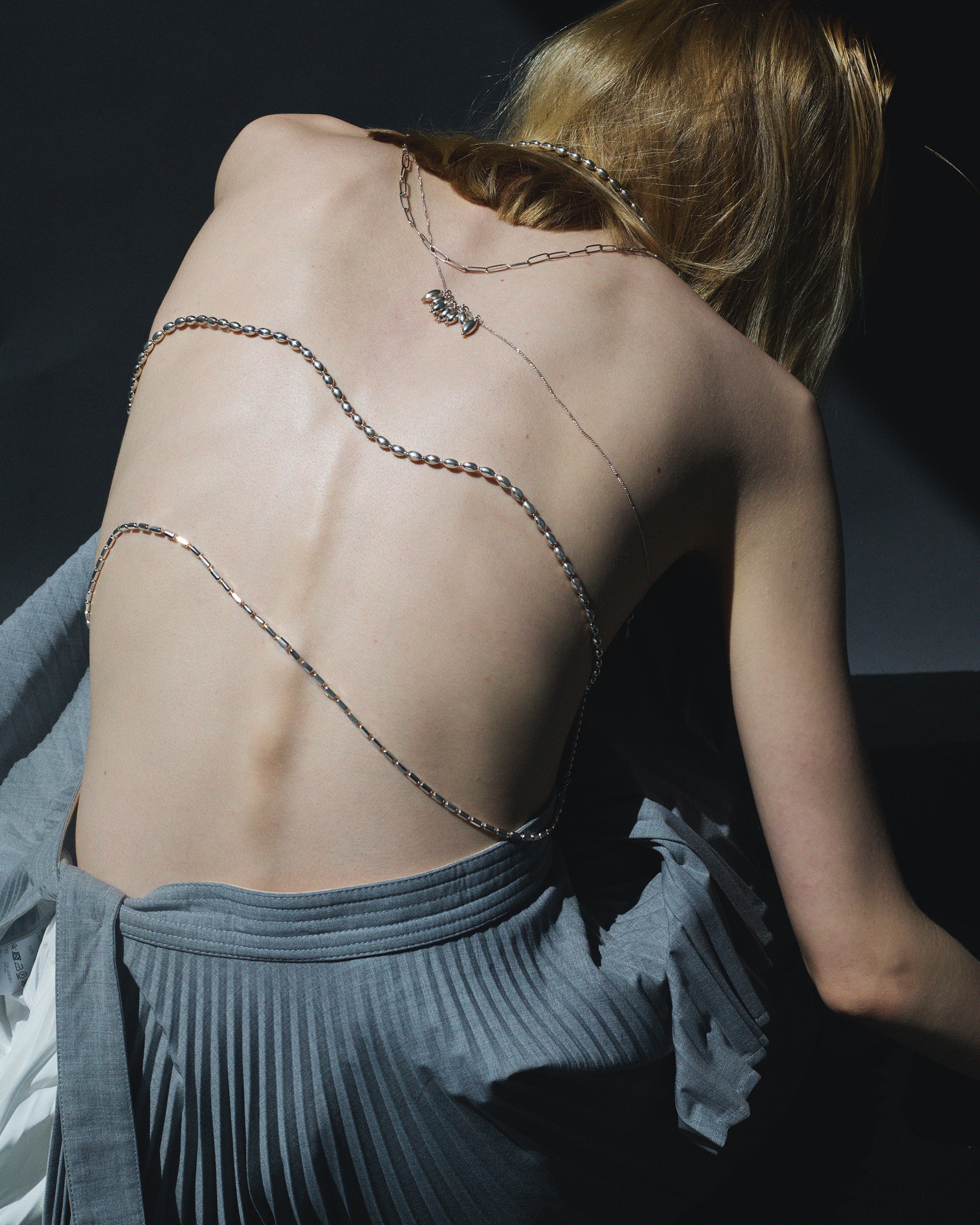 しなやかに続くカーヴィーなシルエットが素肌に沿い、首元にやわらかな陰影を生み出します。