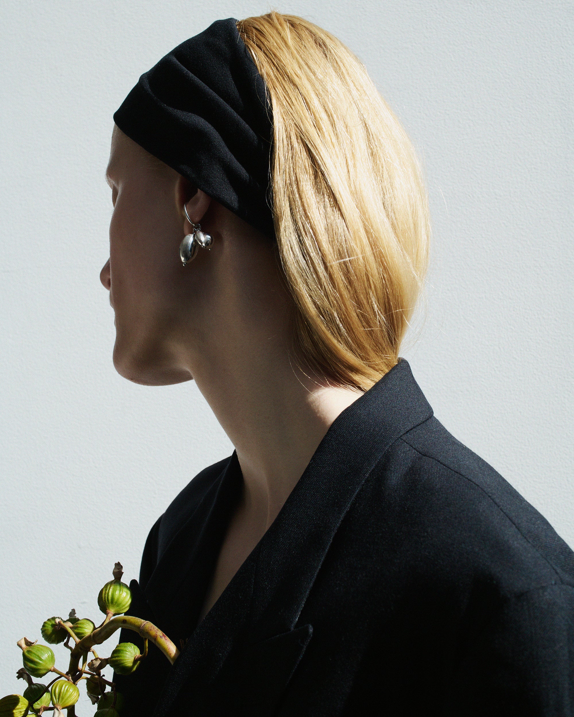 髪はタイトにまとめるか、耳にかけてすっきりと。光を受けるたびにフォルムが強調され、静かな存在感を放ちます。
