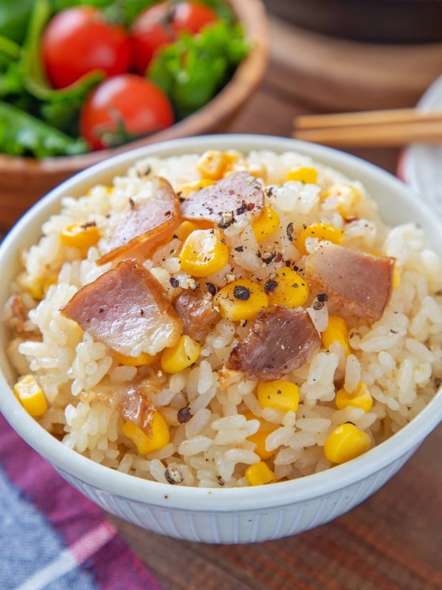 ・「激うま!【とうもろこしとベーコンのバター醤油炊き込みご飯】」by まこりんとペン子さん