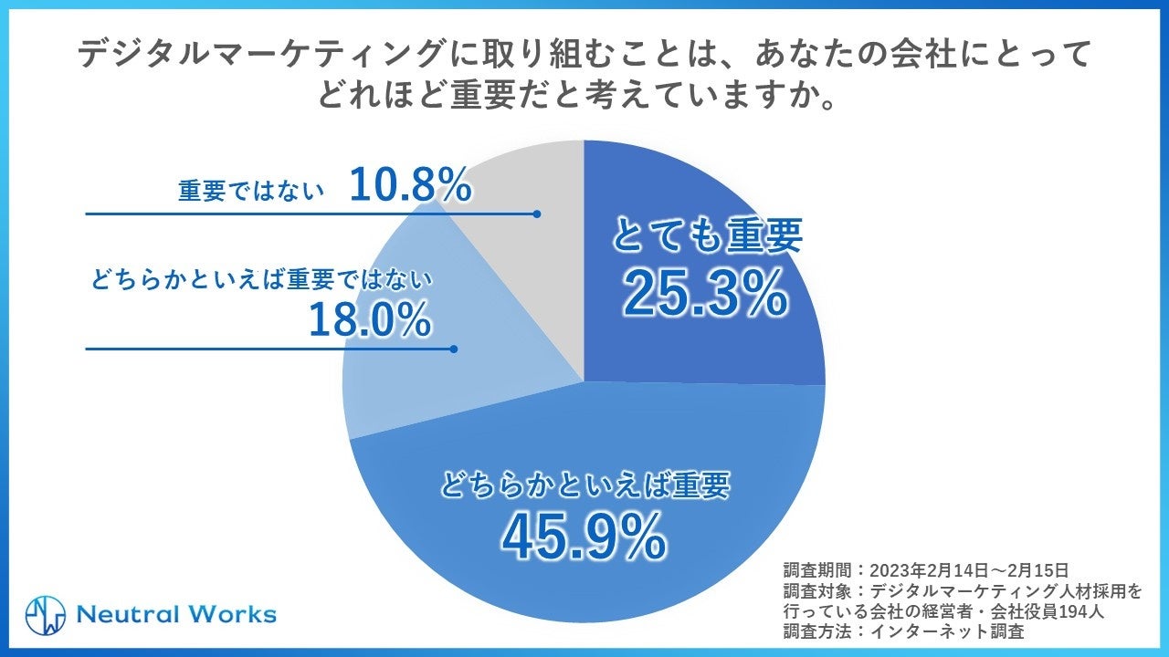 まず、自身の会社がデジタルマーケティング人材の採用を行っている方を対象に、デジタルマーケティングに取り組むことの重要性について考えを伺いました。