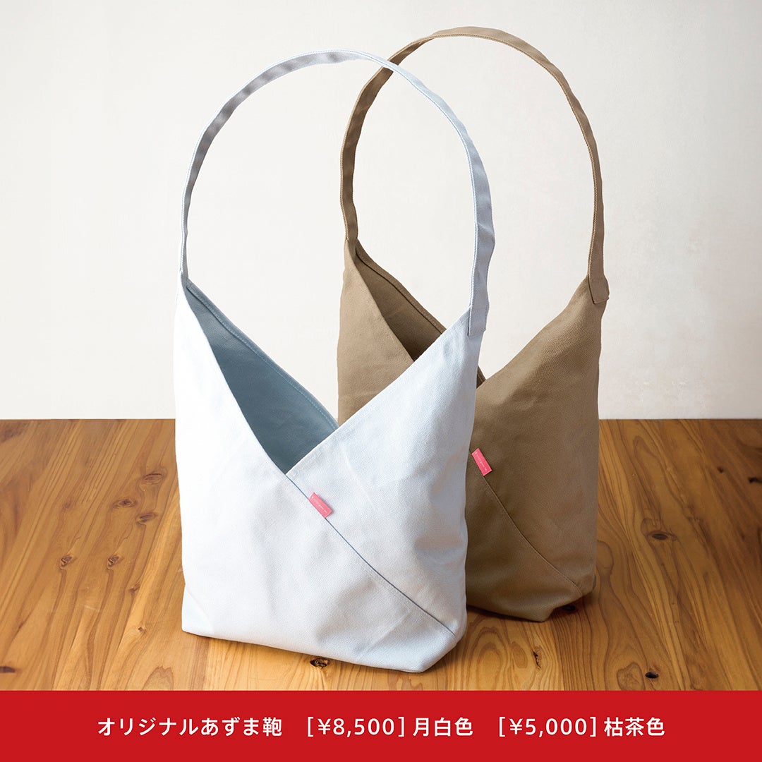 ¥8,500セットは月白色、¥5,000セットは枯茶色のあずま鞄に、全ての福袋商品を入れて販売します。