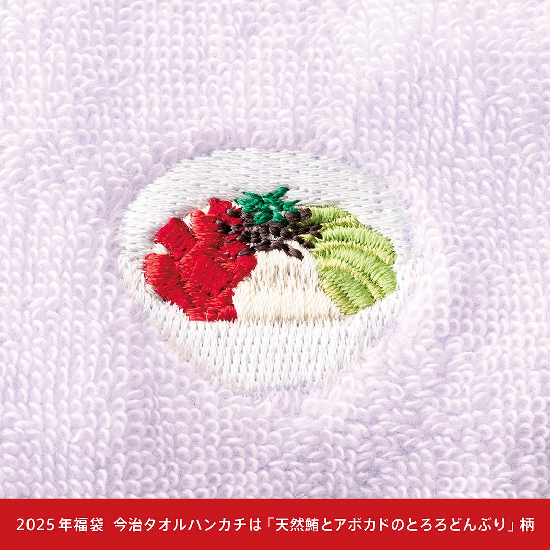 ・〈福袋限定〉天然鮪とアボカドのとろろどんぶり柄 今治タオルハンカチ