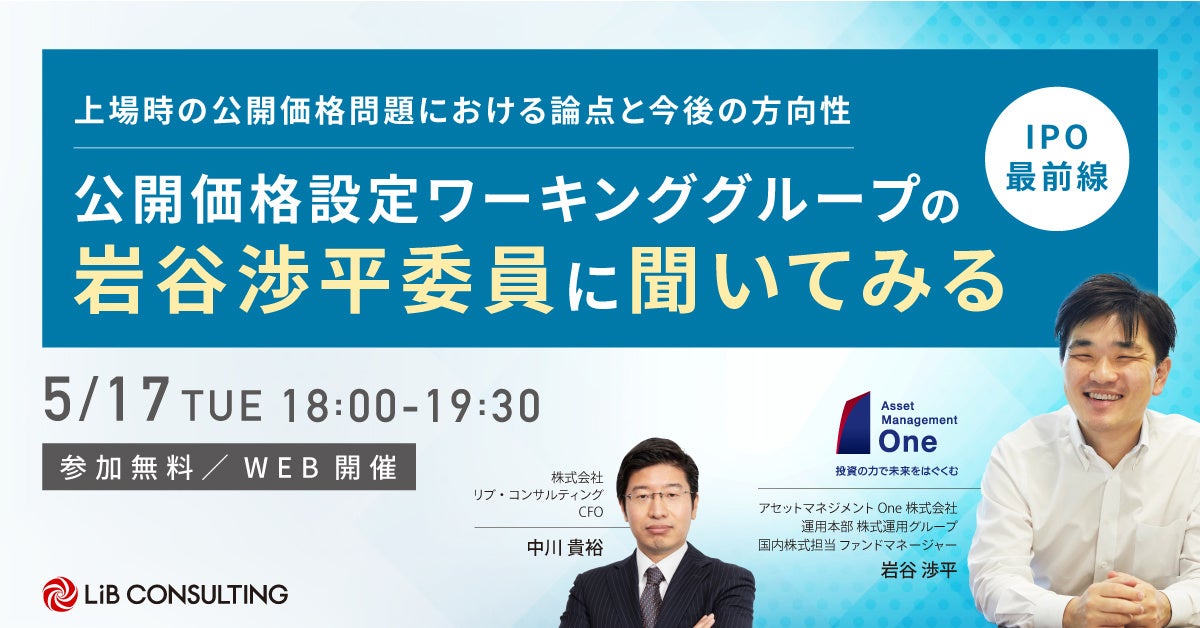 さらに、当社CFO中川貴裕とのインタビュー形式で議論を深め、今後の公開価格問題における方向性を見出して参ります。本セミナーにご興味のある方は、ぜひ下記フォームよりお申込みくださいませ。