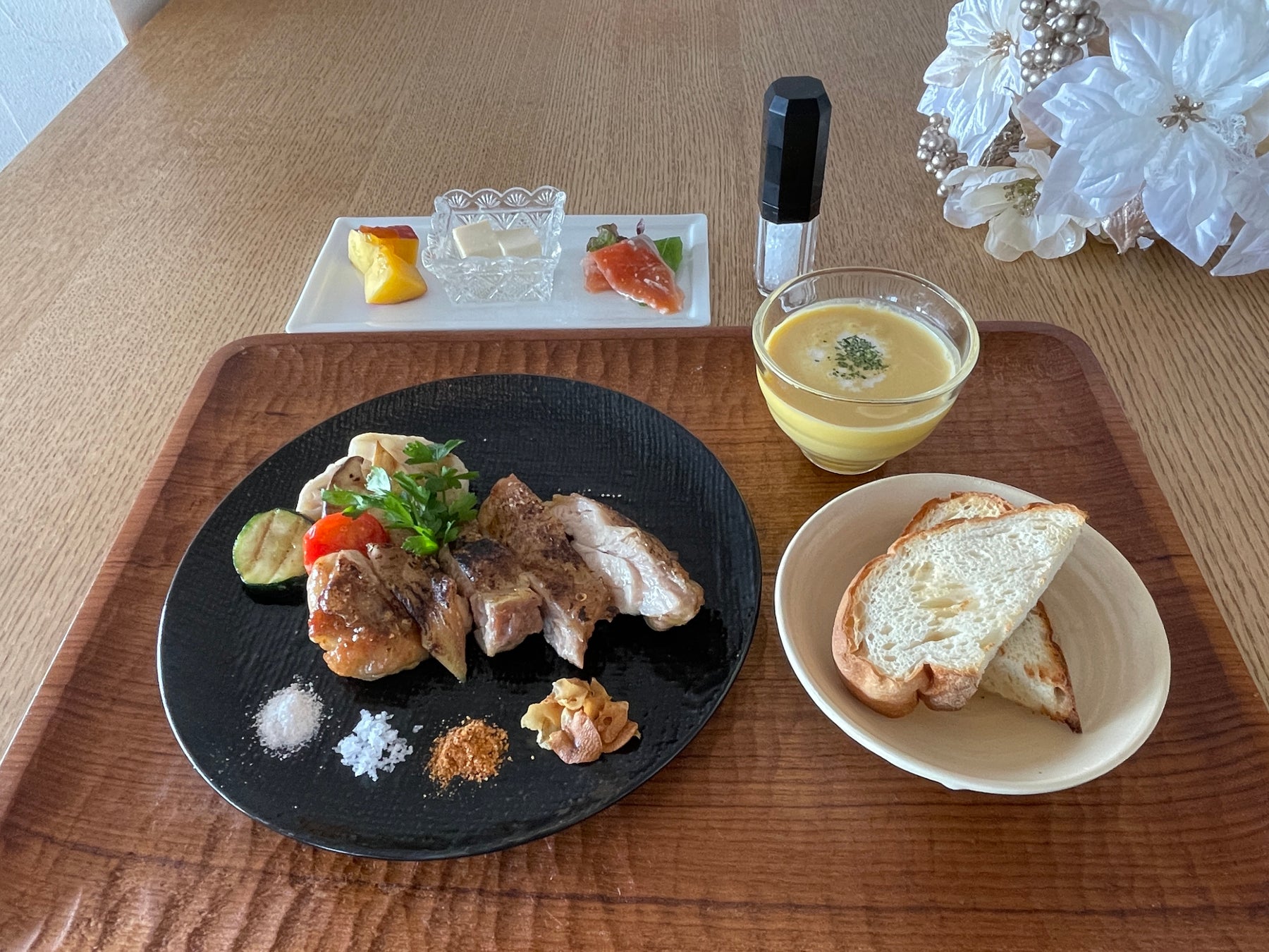 赤穂の塩の美味しさを伝えるAMAMI TERRACEは、赤穂の塩を使ったランチとスイーツを提供しています。今回の企画では、3種類の赤穂塩で素材を味わう「和牛のステーキ」「但馬鶏のステーキ」「サツキマスの包み焼き」をご提供いたします。