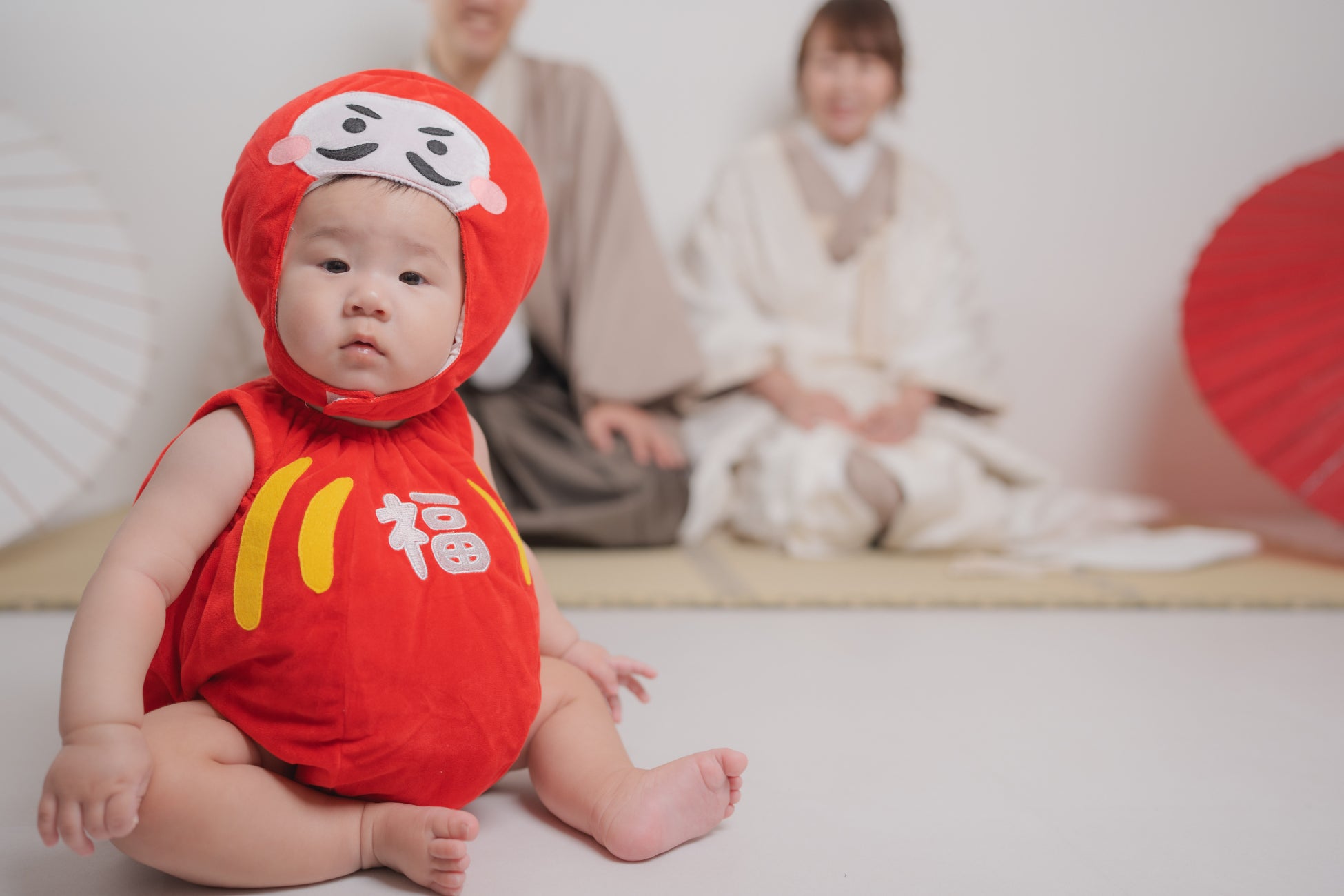 「INAI WEDDING WASOU」では、お子様と一緒に和装前撮りを楽しんでいただけるよう、お子さま用の和テイスト衣装「Baby“福”」シリーズを新たに入荷しました。