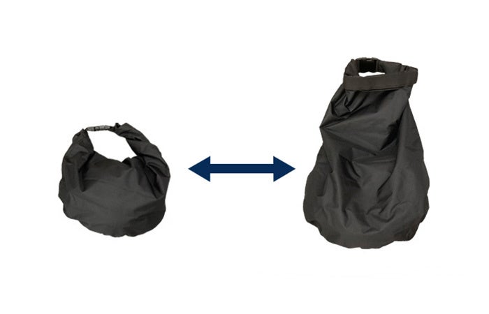 巻く回数に応じて、バッグの大きさを変えられるので、