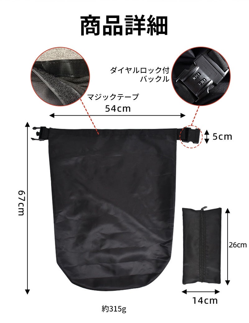 開く部分はマジックテープがあり、しっかりと口を塞ぐことができます。