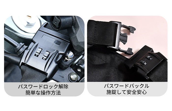 バックルには簡易的なダイヤル式のロック機能があり、盗難防止になります。