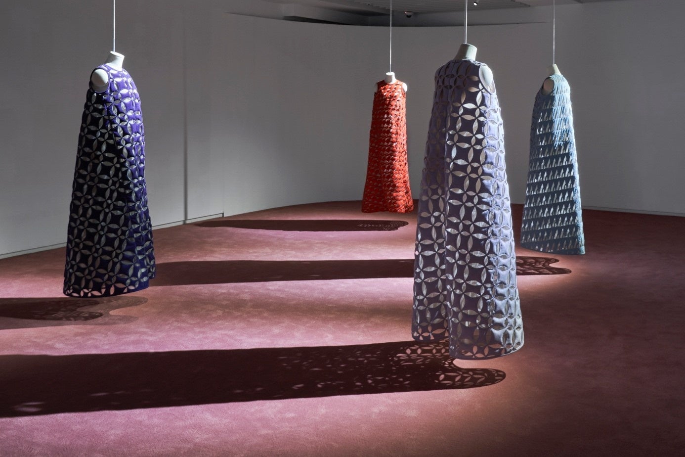 もう一つの「Alcantara-Jaden Cho Collaboration」と銘打たれたセクションでは、2020年のデビュー以来、ロンドンとソウルを拠点にする注目ブランドとして注目されているJaden Cho(ジェイデン・チョー)によって製作された4つの衣装が展示されました。