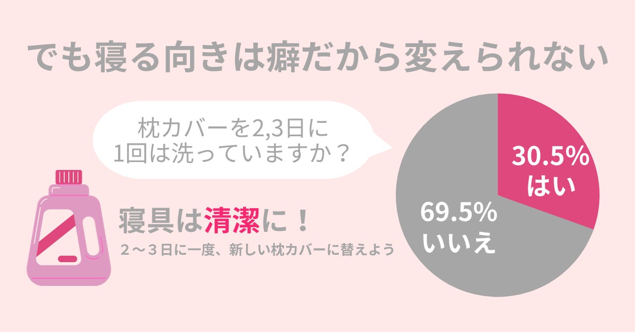 ・30.5%の女性が枕カバーを2,3日に1回は洗う
