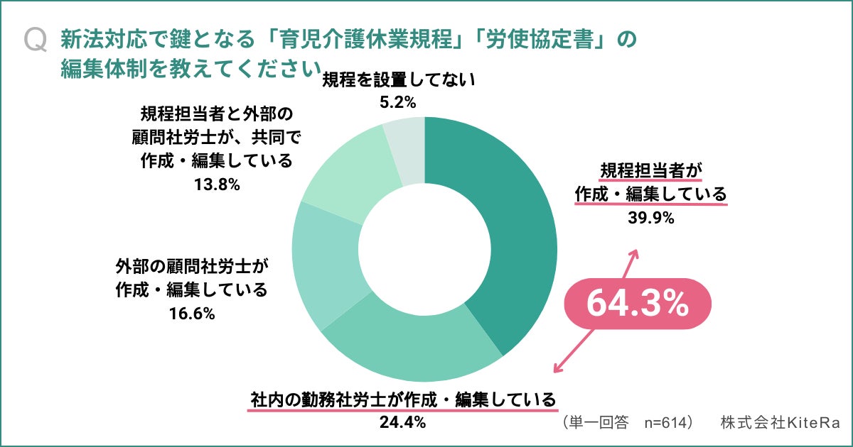 6割以上が新法対応において鍵となる「育児・介護休業規程」「労使協定書」の編集体制を社内で構築している