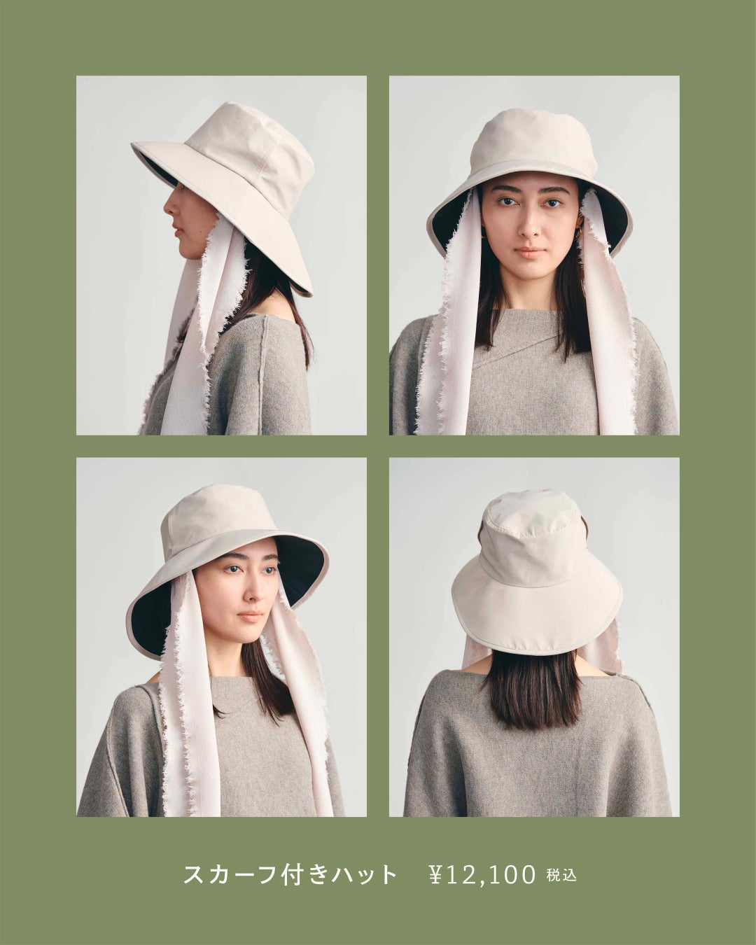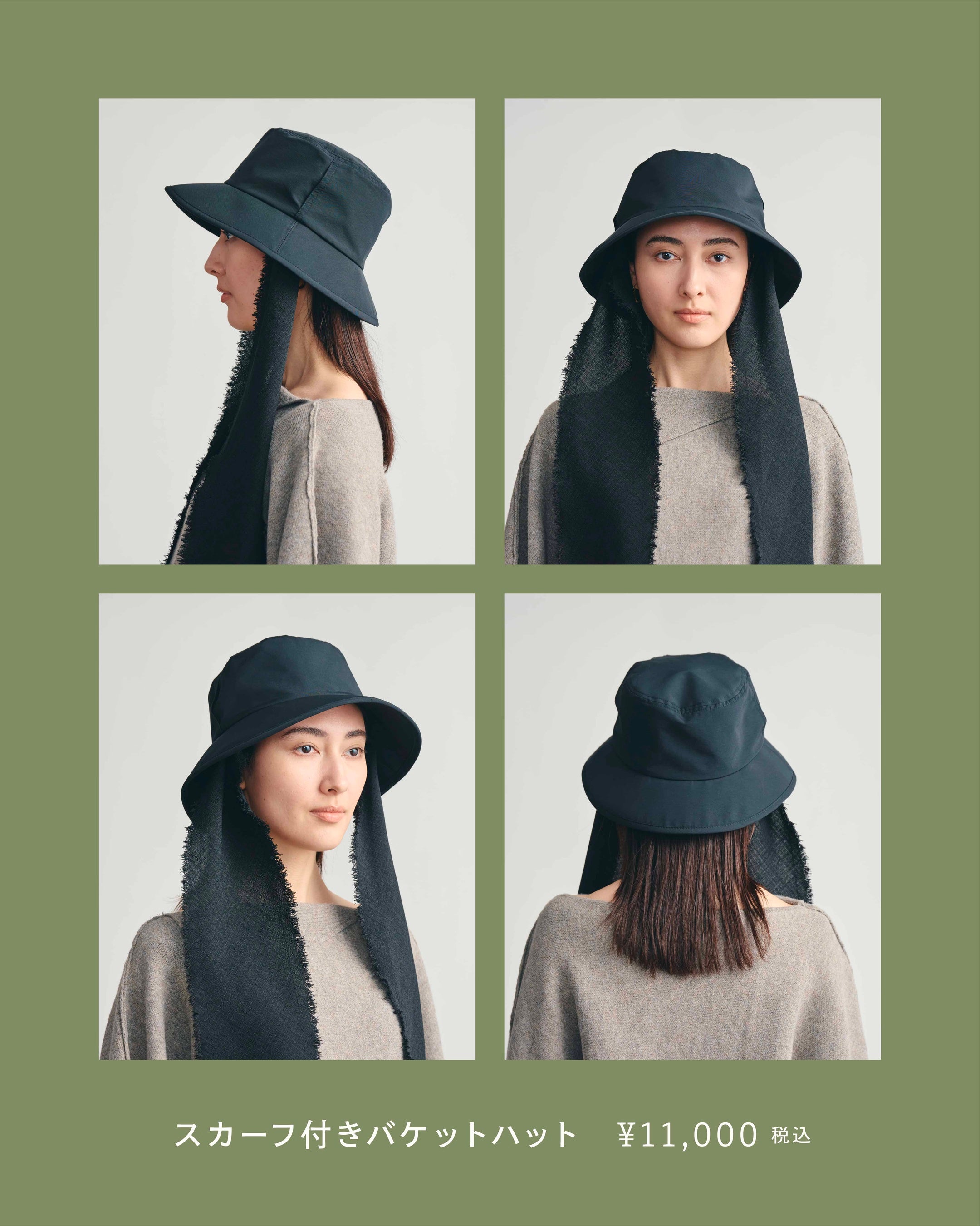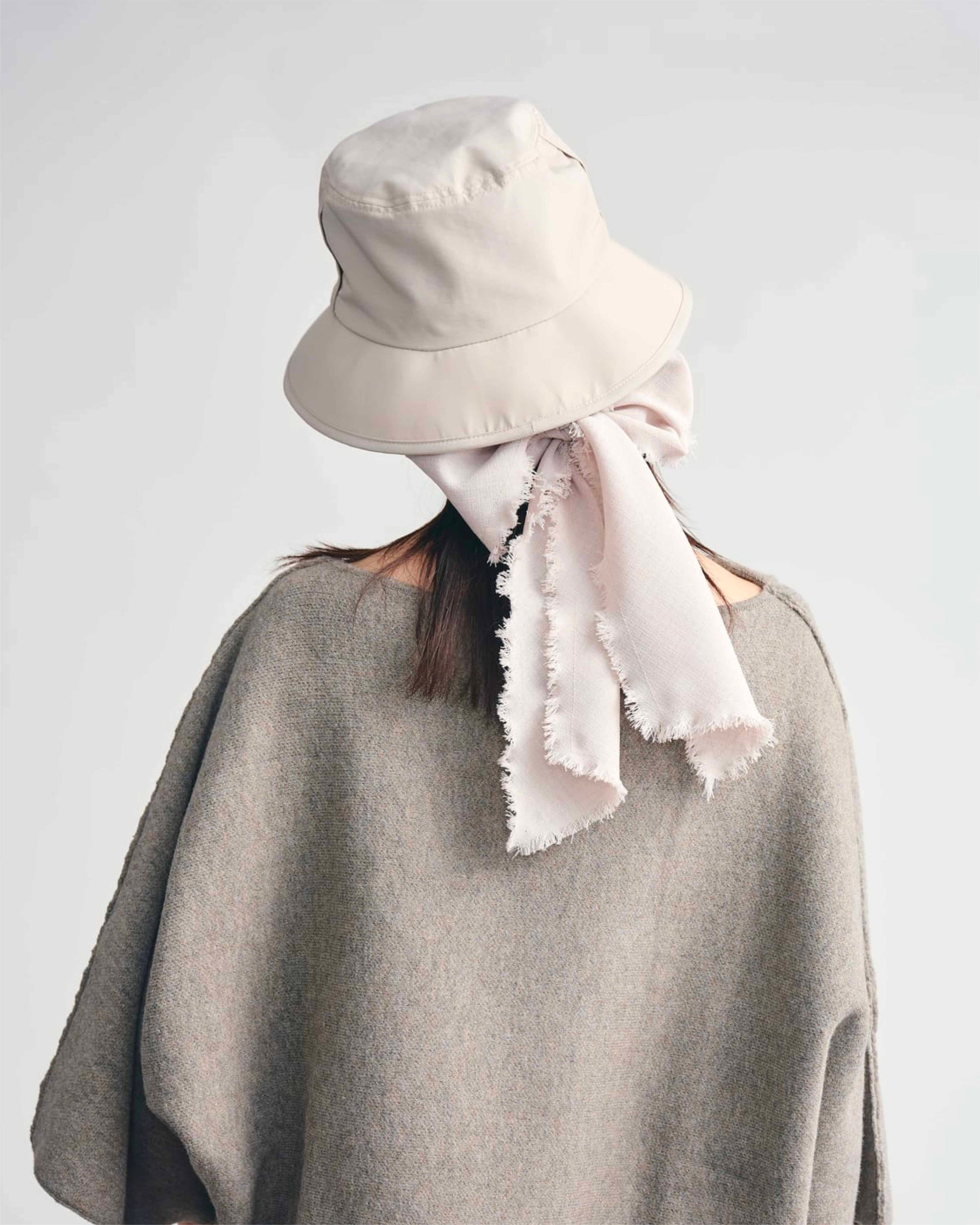 丸みのあるシルエットが顔まわりを自然に包み込む、日常に取り入れやすいバケットハット。スカーフ取り外し可能で、お手持ちのスカーフとの付け替えにも対応。ベンチレーション搭載で蒸れにくい設計です。