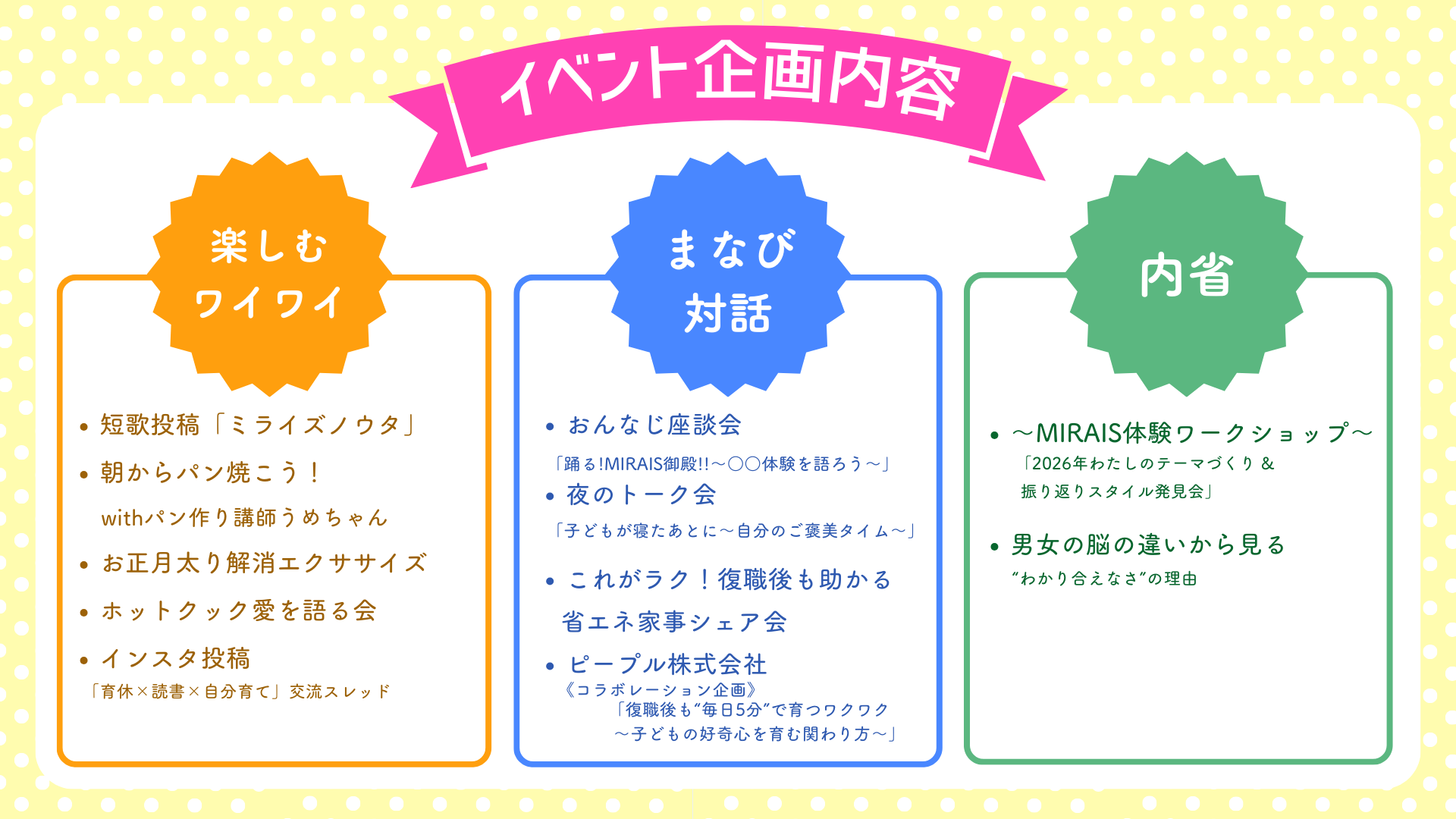 産・育休、復職期の「Happy Box」を開く8日間!MIRAISフェス2026を開催