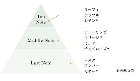 爽やかな透明感から、春らしいグリーンフローラル、そして最後はしっとりとした甘い香りへと移ろう、みずみずしくてあたたかいチューリップの香りのオードパルファン。