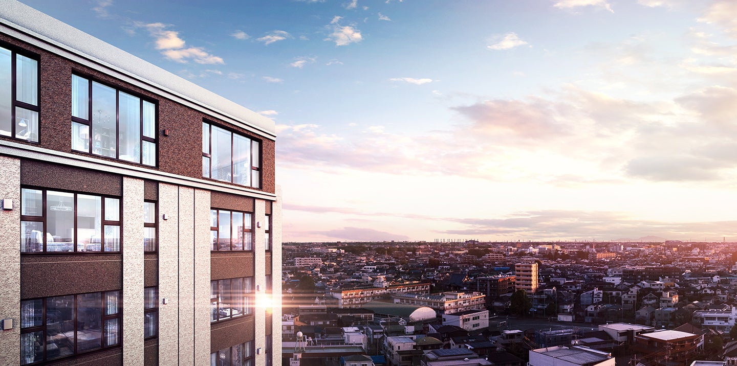 浦和には、公共施設や門、塀など至る所に西洋文化が取り入れられた洋風の茶系建造物が残されています。外観デザインは、それらの様式美を取り入れた茶のファサードをベースに、広く開放的な空に向かって真っ直ぐ伸びるマリオンを組み合わせ、浦和の歴史と本物件特有の開放感を一体で表現する新たなランドマークとなることを目指します。