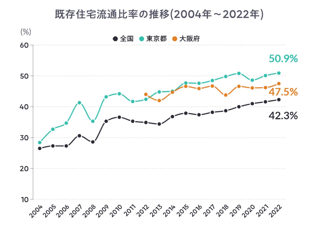 また、中古マンションは新築と比べて供給量が多く価格も抑えられることから流通が活性化しており、既存住宅流通比率は全国で40%を突破していますが、中古マンションは新築と比較して物件を見極める難易度が高いという特徴があります。