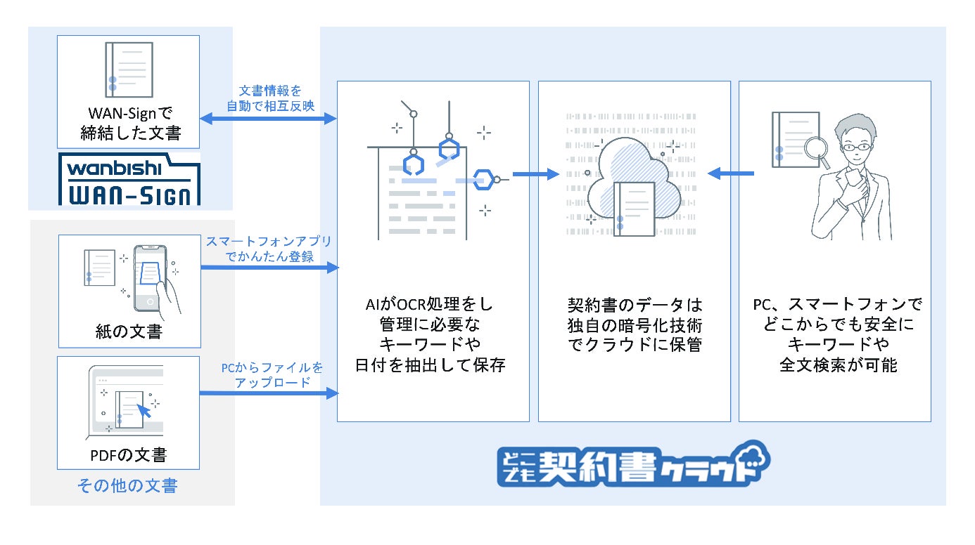 NXグループが提供する電子契約・契約管理サービス「WAN-Sign」と契約書保管クラウド「どこでも契約書クラウド」が連携開始