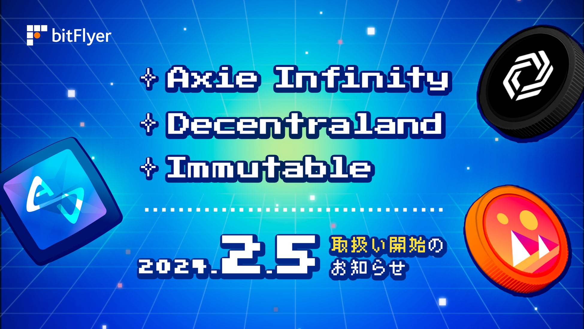 新規暗号資産「アクシーインフィニティ(AXS)」「ディセントラランド(MANA)」「イミュータブル(IMX)」取扱い開始のお知らせ