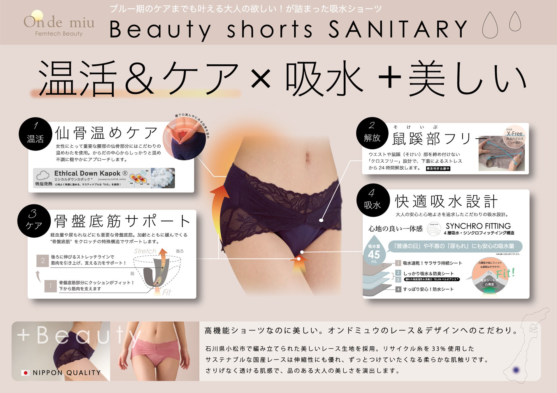 (メイン品)・オンドミュウ ビューティショーツ 吸水サニタリー 2色 各6,500円(税込) ※新商品