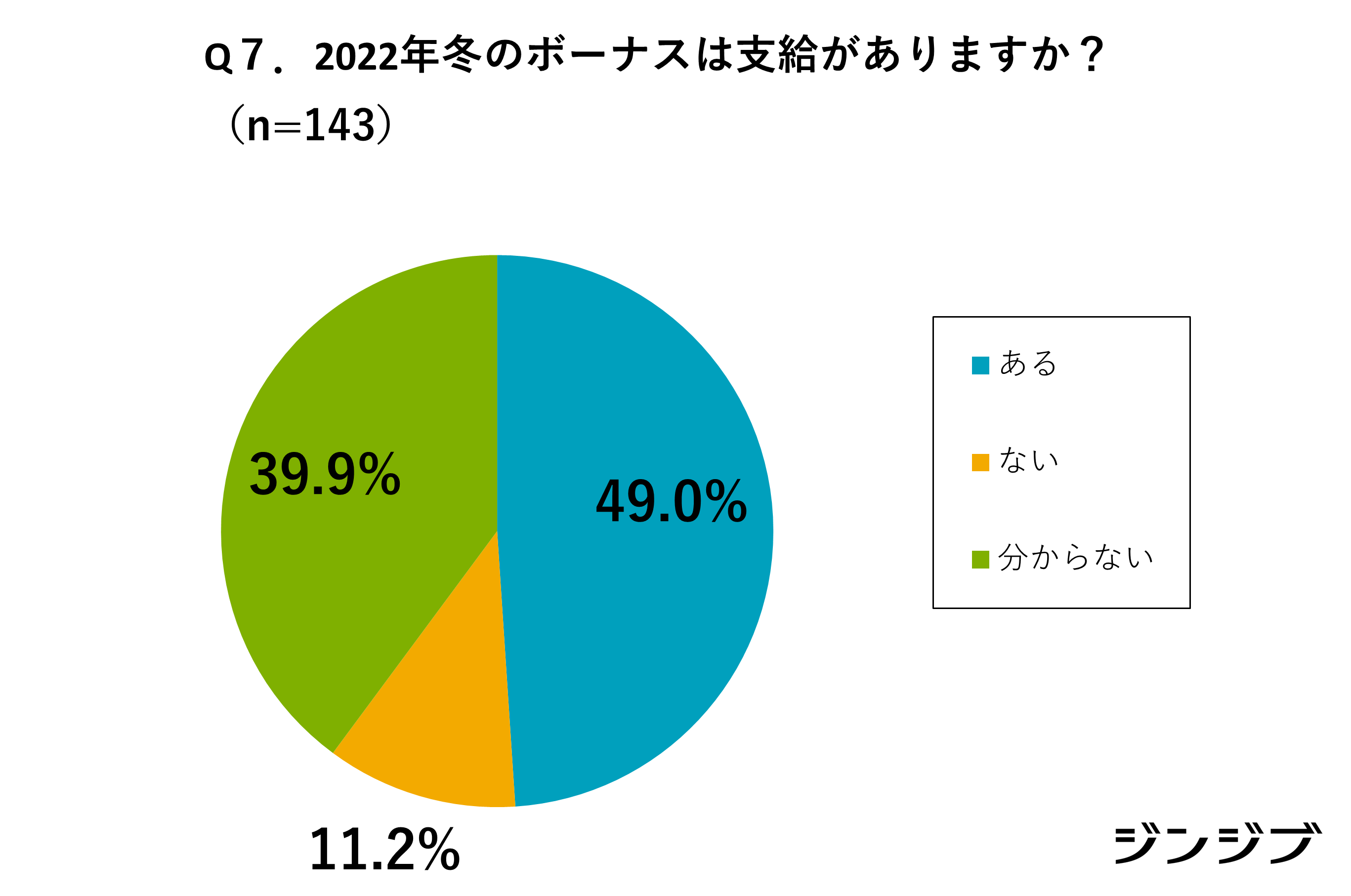 7.2022年冬のボーナスは支給がありますか?(n=143)