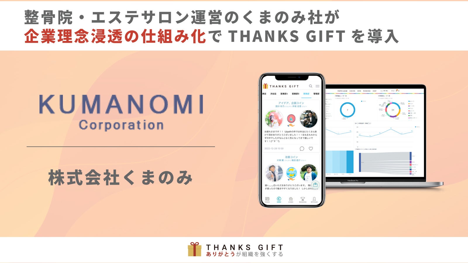 整骨院・エステサロン運営のくまのみ社が、企業理念浸透の仕組み化でTHANKS GIFTを活用