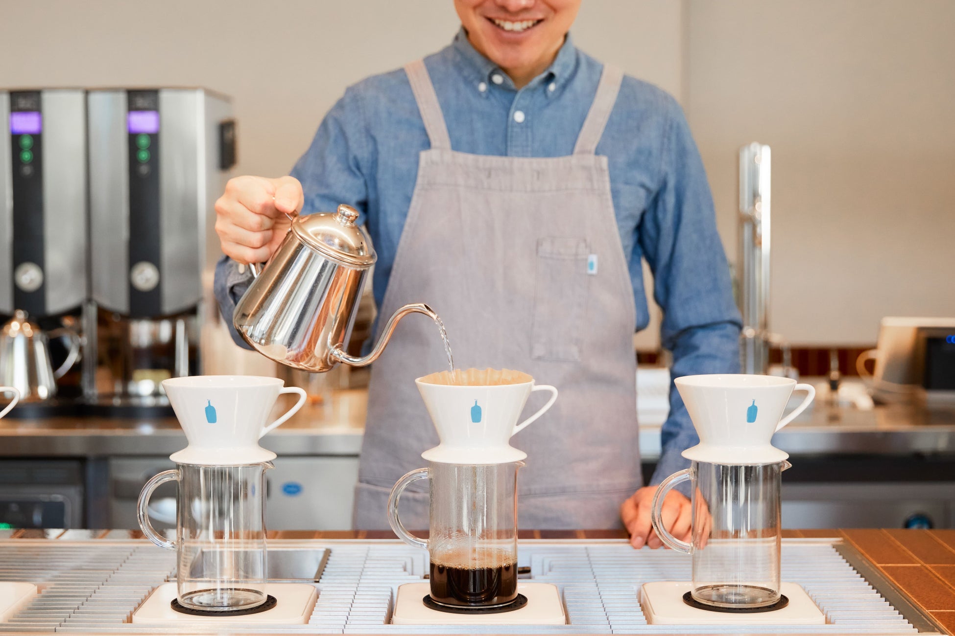 ブルーボトルコーヒーは2002年に、創業者のジェームス・フリーマンによって、アメリカ・カリフォルニア州・オークランドで誕生しました。世界中のコーヒー農園から仕入れた高品質で新鮮なコーヒーを国内の自社焙煎所で焙煎し、ご注文を受けてから丁寧に淹れた、おいしさを徹底的に追求したスペシャルティコーヒーをご提供しています。品質へのこだわりとサステナビリティへのコミットメントを原動力として、「おいしいコーヒーは人生をより美しくする」というシンプルな信念のもと、おいしいコーヒーで世界をつなぐことを目指しています。現在はアメリカとアジア(日本、韓国、上海、香港)に合計 100 店舗以上のカフェを展開しています。 詳細はブルーボトルコーヒーの各SNSや公式オンラインストアをぜひご覧ください。