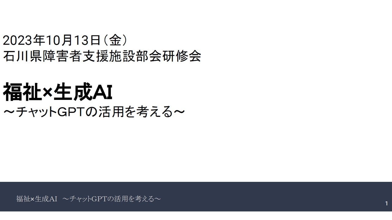 DX化が遅れているとされる福祉現場でのchatGP活用方法を検討し、施設利用者の状況に応じた支援計画などの事務的な業務の効率化を図るために、「利点や課題の洗い出し」「試行導入の経過」などを、実践的取り組みの情報共有を研修形式で実施しました。