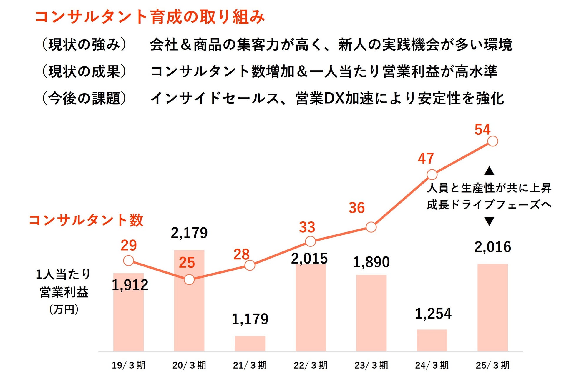 直近25/3期では社員1人当たり2,000万円を超える営業利益を達成していますが、これは上場企業の中でも上位にランクインしています。