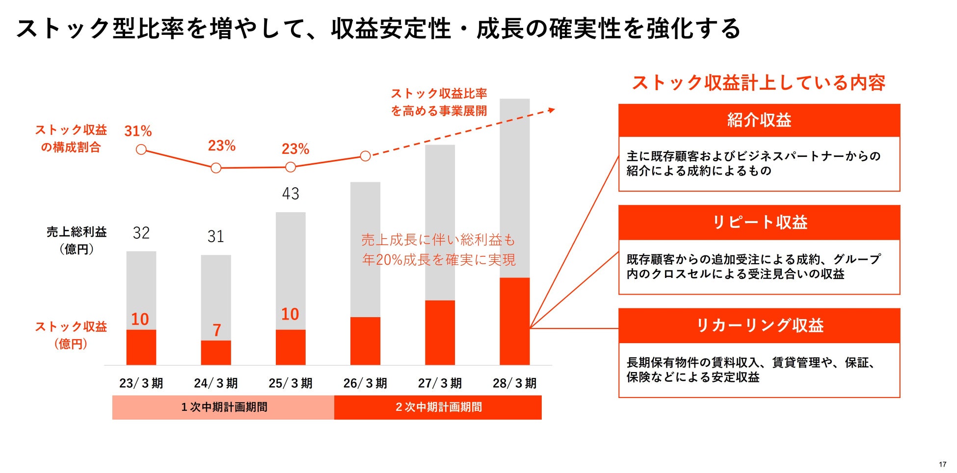 過去20%を超過しており、今後も紹介・リピート顧客を増やしていくことで、このストック性を強化していきます。