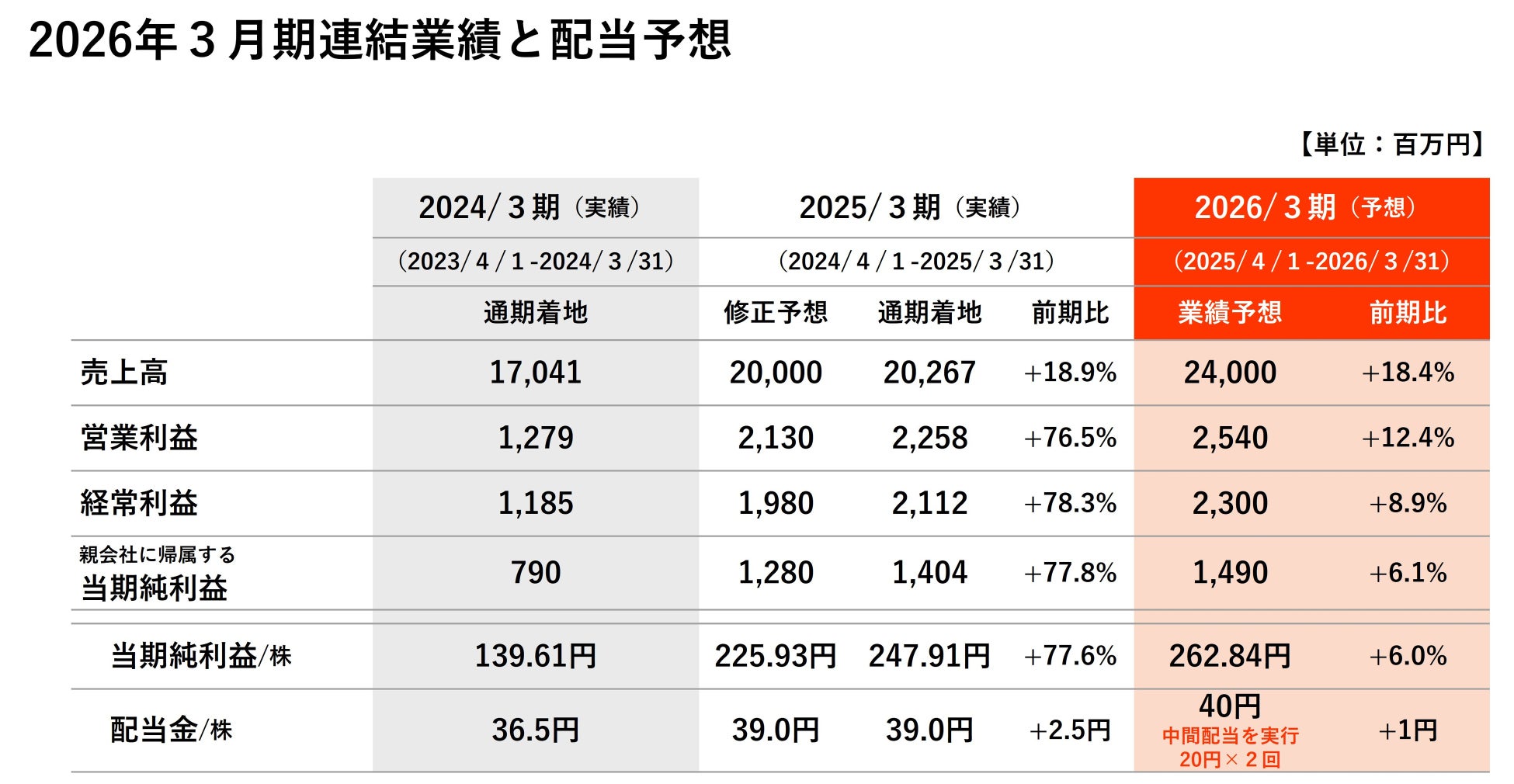 25/3期の本決算において配当の累進配当&中間配当開始、および株主優待の回数増加を発表しました。