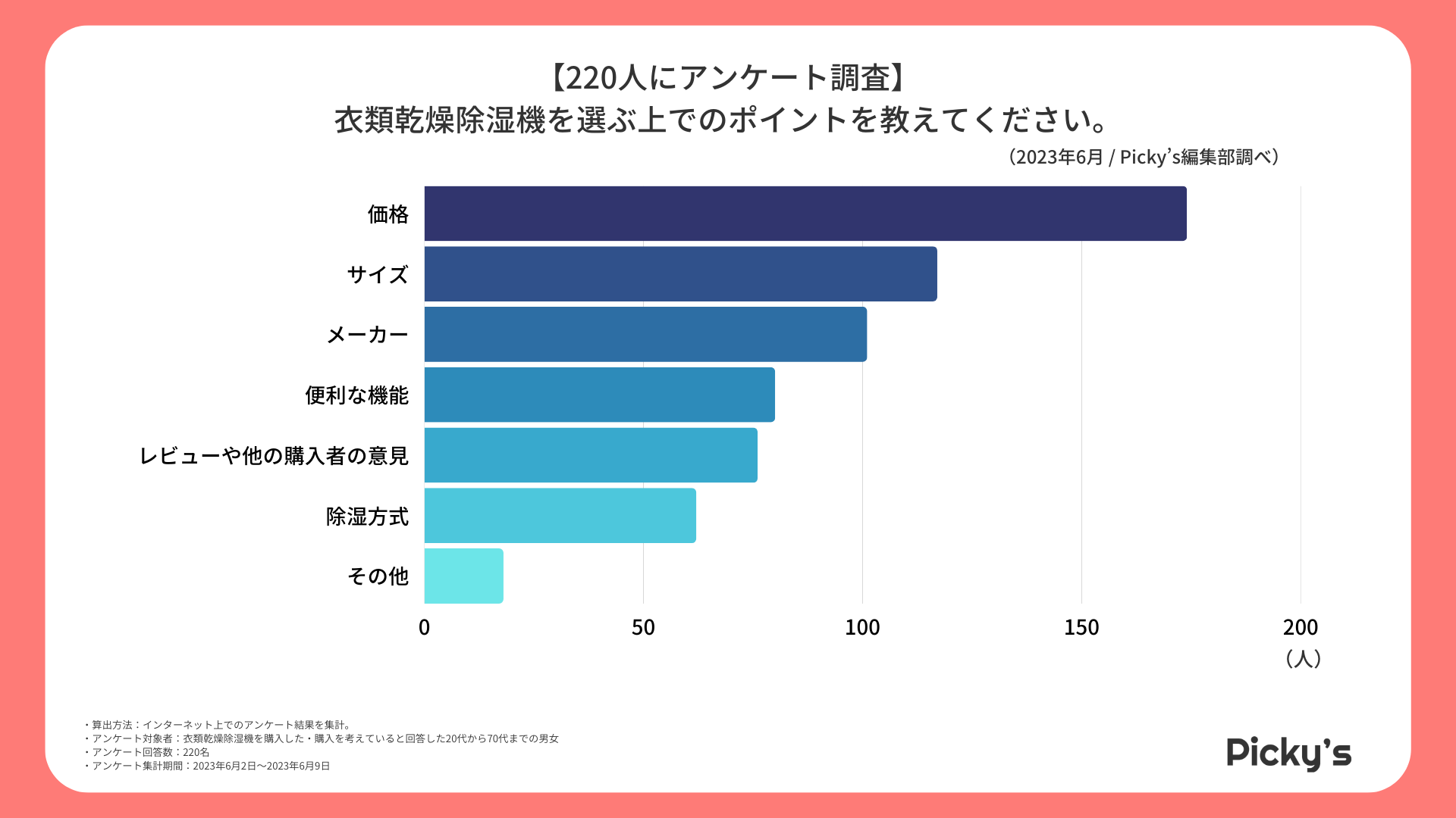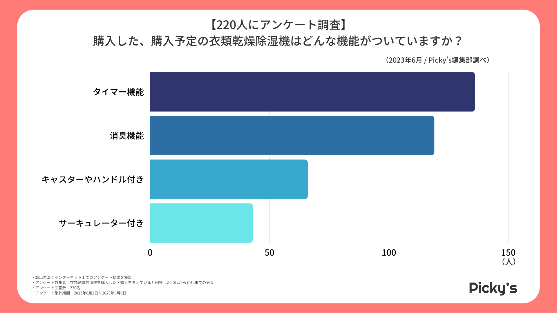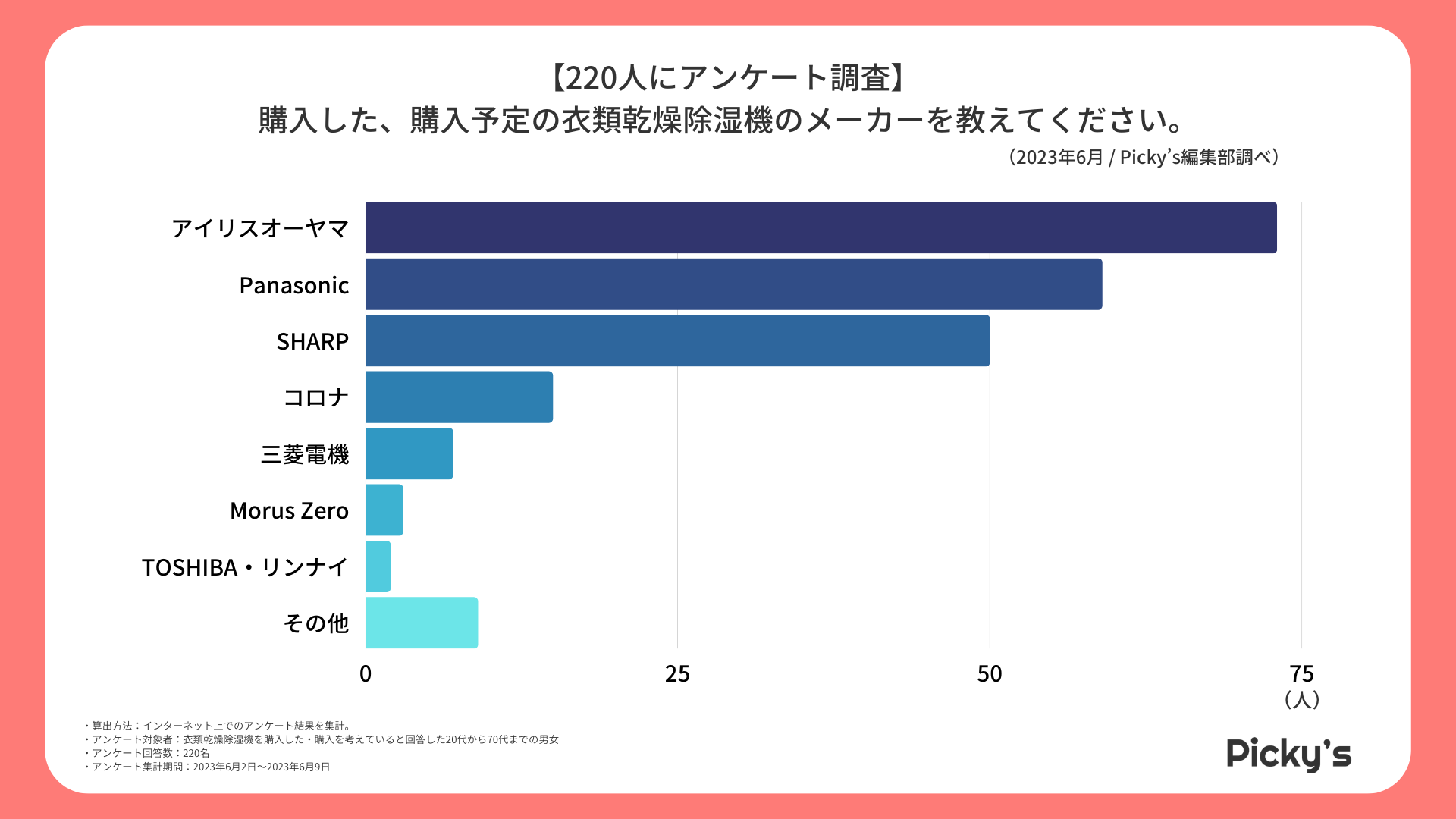 「Picky’s」は、インターネットショッピングにおいて、購入前に試せない・選ぶべきものがわからないという課題の解決を目標に、あらゆる商品のおすすめランキングや検証レビューを紹介するサイトです。このたびPicky’s(https://rentry.jp/note/)では、衣類乾燥除湿機についてインターネット上でアンケート調査を行いましたので発表いたします。