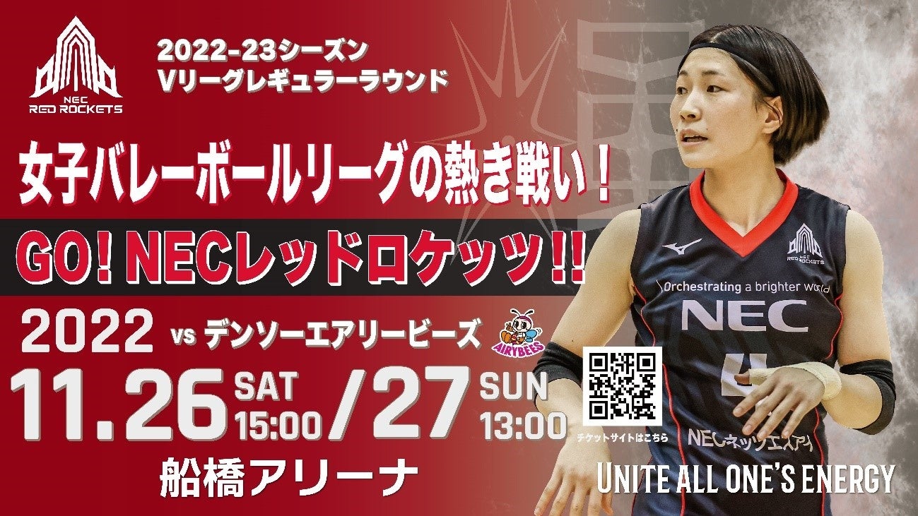 NECレッドロケッツが11月26日(土)、27日(日)に船橋アリーナにてホームゲームを開催!B.LEAGUE 所属の千葉ジェッツふなばしとのコラボレーションが実現!【Vリーグ/バレーボール】