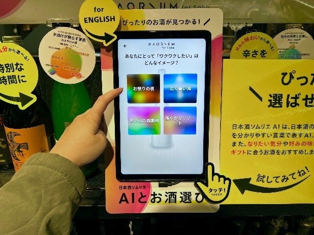 「KAORIUM for Sake」は、膨大な言語表現と人の香りの感じ方に合わせて、1万以上の日本酒の風味・感性データと酒ソムリエの感性を取り入れた最先端のAIシステムです。