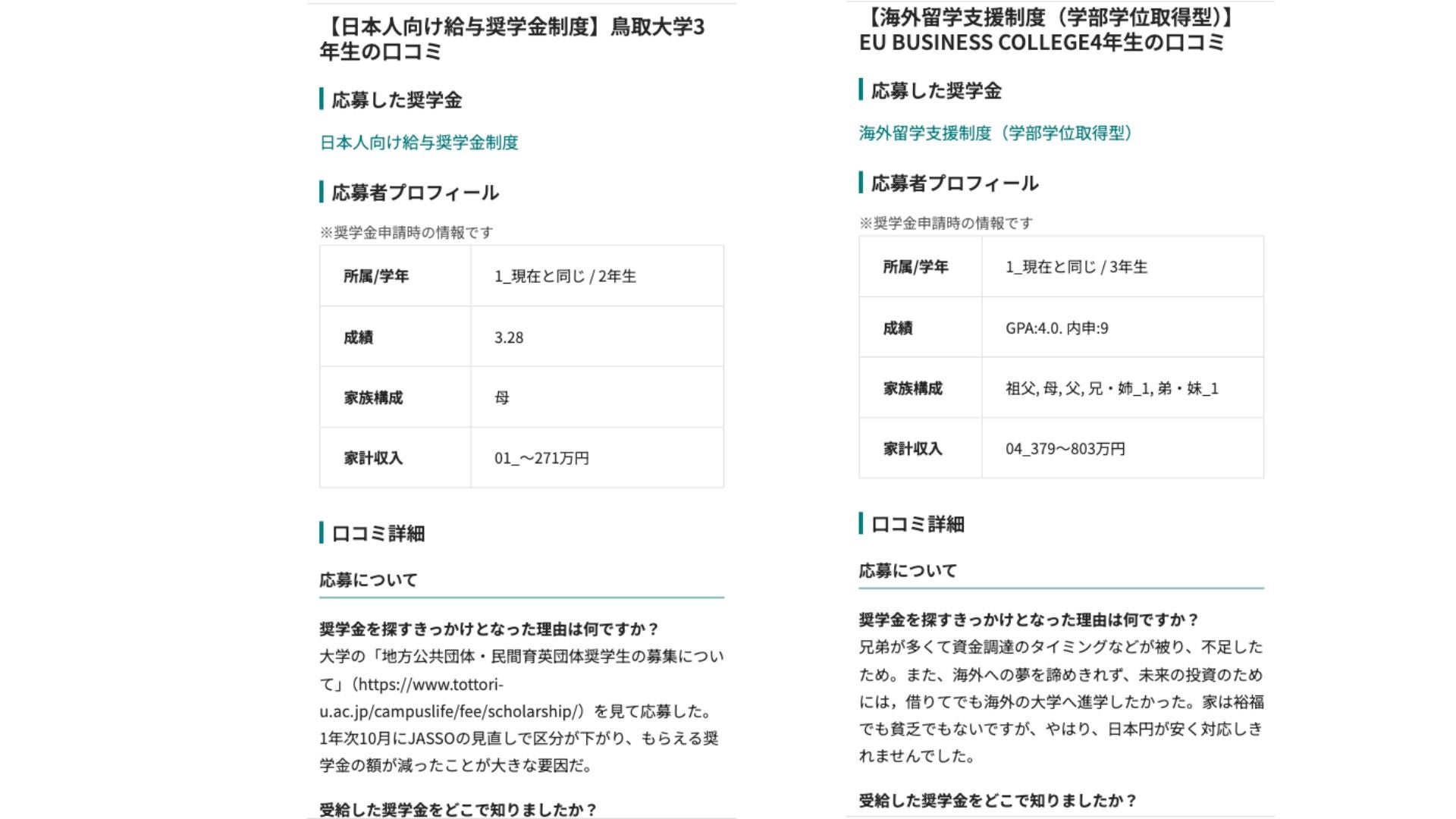 ガクシーでは、奨学金に合格した学生のリアルな体験談(口コミ)を掲載しています。