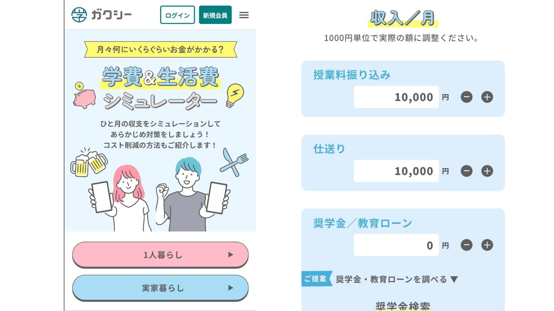 新機能② 学費&生活費シミュレーター
