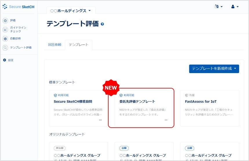 図2:提供開始した「委託先評価テンプレート」(GROUPS提供機能「テンプレート評価」のテンプレート作成画面)