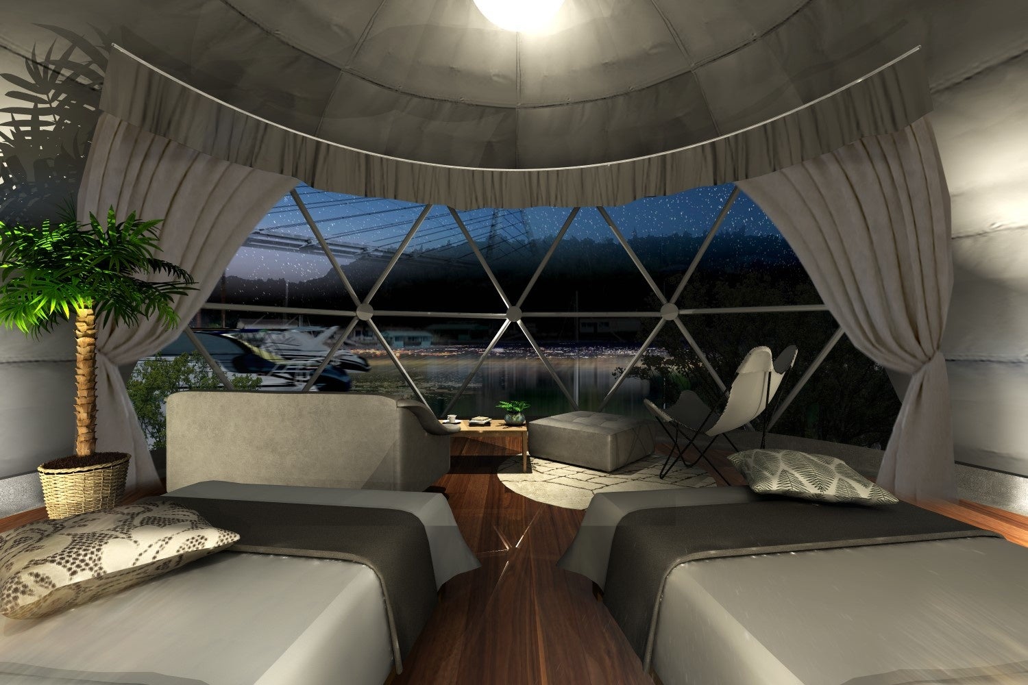 大人気のオシャレなドーム型テントを配置。広々としたユニークな空間の室内は、各棟にエアコンも完備しオールシーズン快適にお過ごしいただけます。また、各ドームが載るデッキには専用BBQスペースも付いており、自由にお食事を満喫できます。