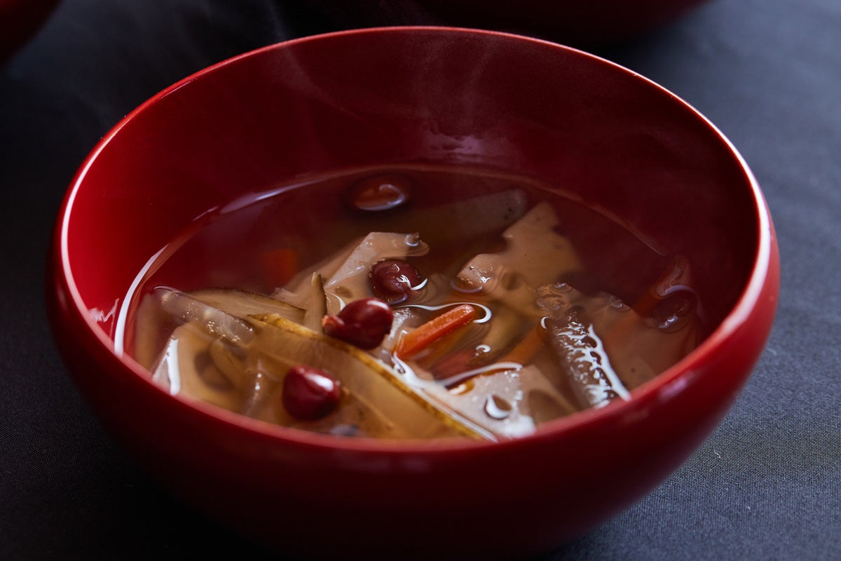 智積院では、中興の祖・興教大師覚鑁(こうぎょうだいし・かくばん)の命日にあたる十二月十二日の法要後に、この汁物をいただく風習が今も続いています。