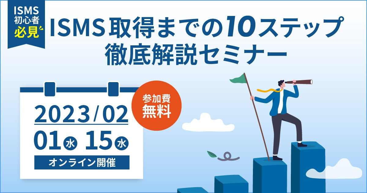 LRM株式会社(以下 LRM、本社:兵庫県神⼾市、代表取締役CEO:幸松哲也)が、2023年2月1日(水)・15日(水)の2日程で、「ISMS初心者必見!ISMS取得までの10ステップを徹底解説オンラインセミナー」を開催いたします。