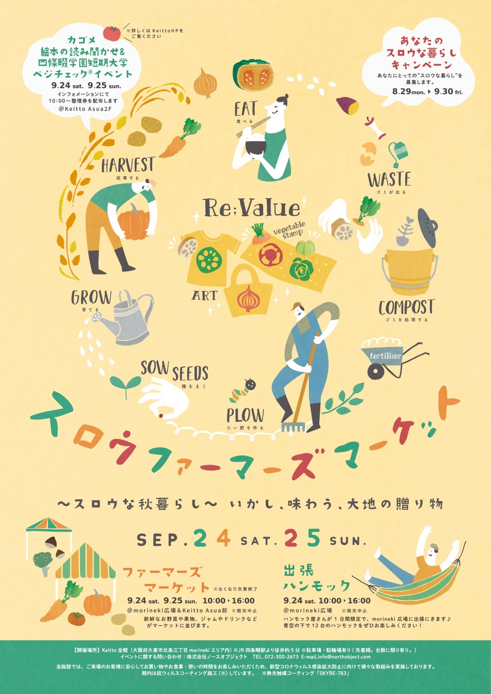 株式会社ノースオブジェクト(本社:大阪府大東市、社長:南大助)が運営する、子育てママとファミリーに手に届く豊かな暮らしを提案する街「Keitto(ケイット)」で、9/24(土)25(日)の2日間、イベント「スロウファーマーズマーケット」を開催します!