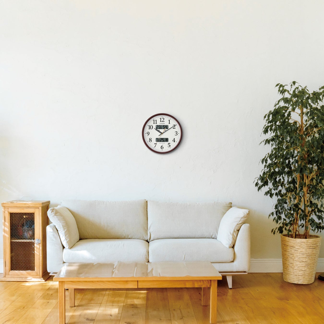 トレンドに左右されないロングライフデザインの液晶付き電波掛時計シリーズです。温度・湿度表示付きで、液晶が1つのタイプ、2つのタイプからお選びいただけます。