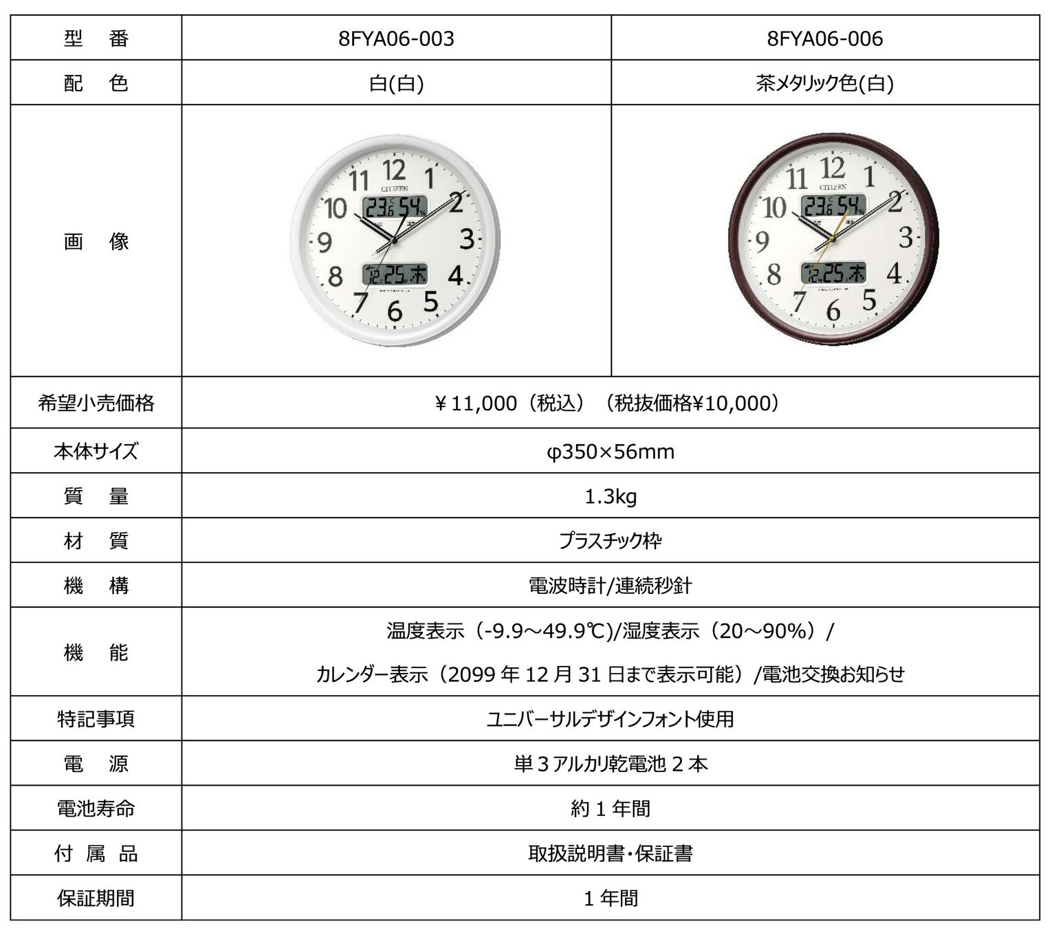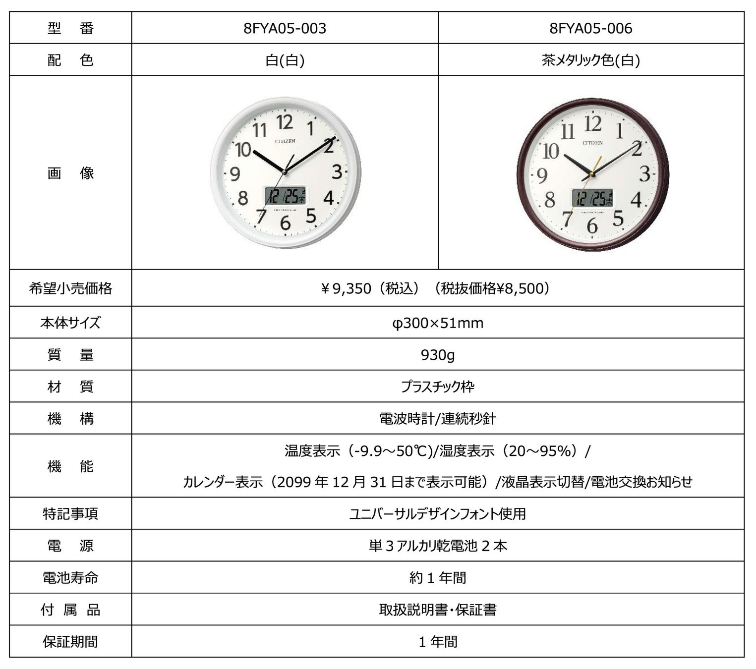リズム株式会社(取締役社長 湯本武夫)は、時間が見やすく温度・湿度もわかる液晶付きの電波掛時計シリーズ「8FYA05-0」「8FYA06-0」を5月上旬より発売いたします。
