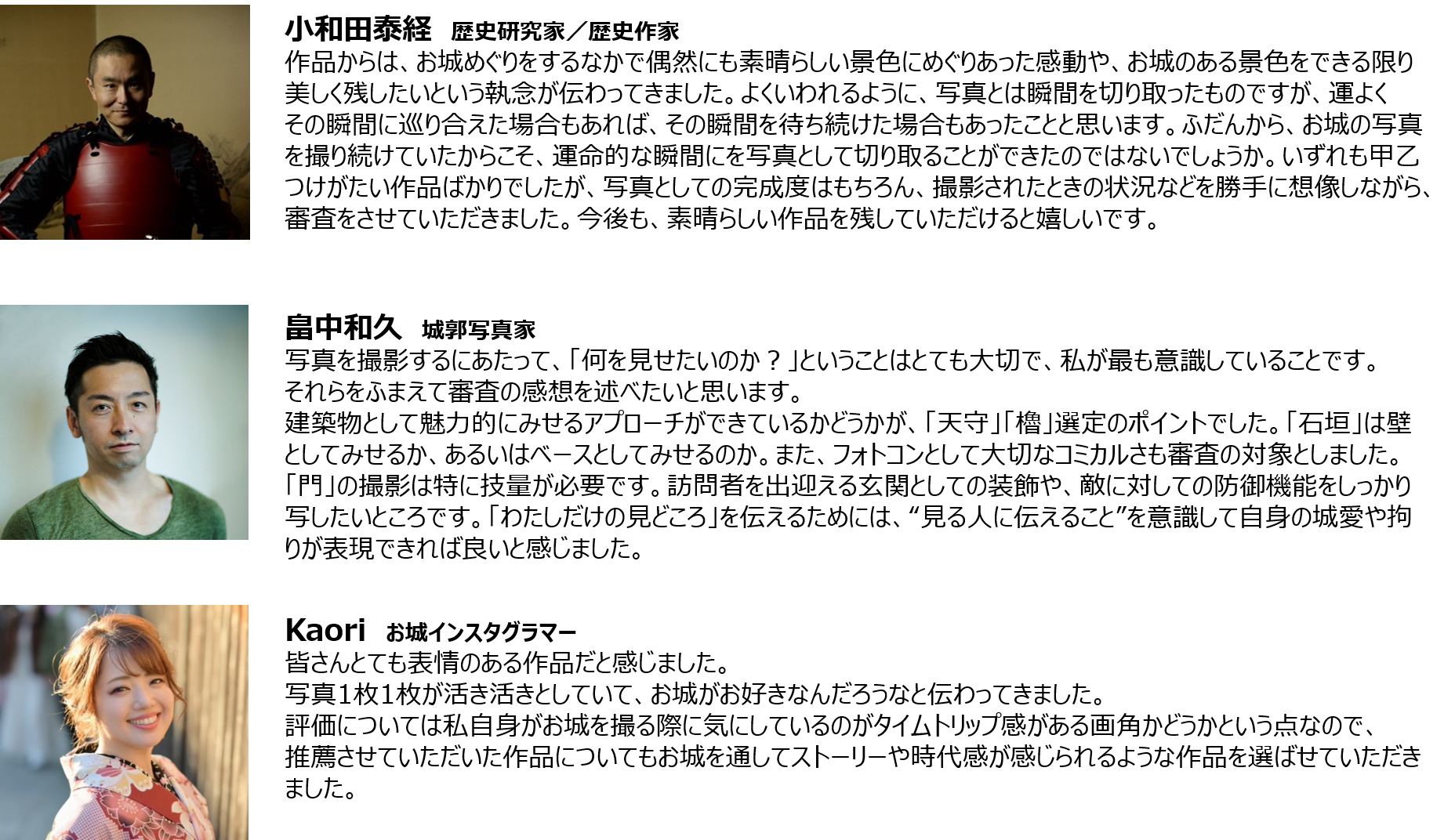 皆様、今回の「お城フォトコン2022」はいかがでしたでしょうか。