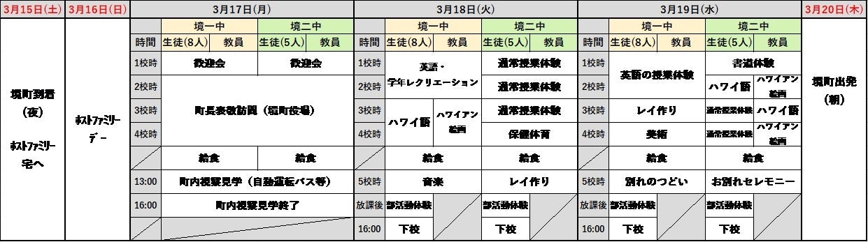 ※教員欄は、アリアマヌ中学校教員による境町生徒への特別授業になります。