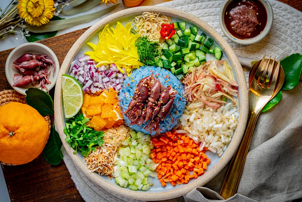 今や「Chompoo」の代名詞となったお馴染みの「カオヤム」など既存のディナーメニューにも、日本の食材との掛け合わせから生まれるアジアの親和性や、どこか懐かしく感じられる日本人に馴染み深い味わいもアクセントに加えます。さらに、日本の四季が織りなす一瞬一瞬の旬から生まれる、素材の旨みと美しさも週替わりで丁寧に取り入れていきます。