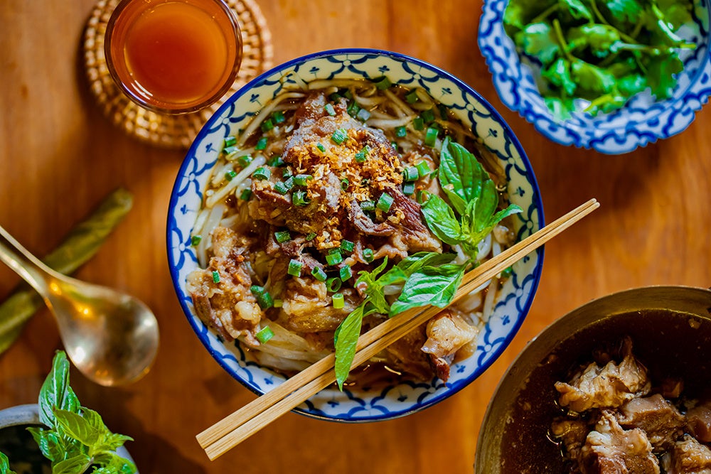 隣国ベトナムの影響から、タイの東北地域で親しまれている、米麺を使ったやさしい味わいの「牛すじフォー」。香り高いタイバジルを使い、牛すじの滋味深い出汁の旨みが口いっぱいに広がります。酸っぱい、辛いだけでない、タイの麺料理のおいしさをお届けします。